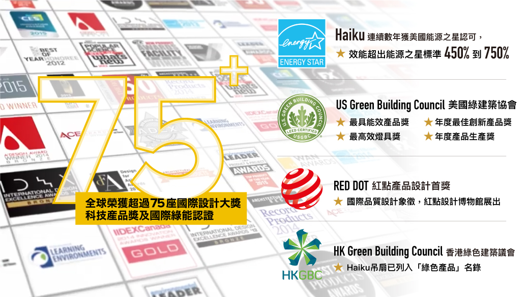 *榮獲超過75座世界設計大獎及各種綠能認證